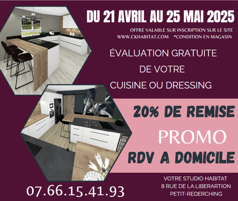 Pour cela, inscrivez-vous dès maintenant sur ckhabitat.com et prenez rendez-vous avec Charlène, notre conceptrice et agenceur d’intérieur, fondatrice de la société CKHABITAT , forte de 14 ans d’expérience. En plus, vous bénéficierez d’une remise de 20% sur votre futur projet !
